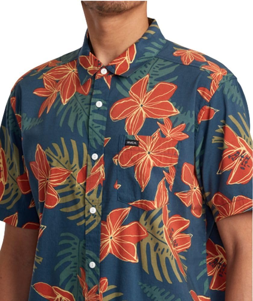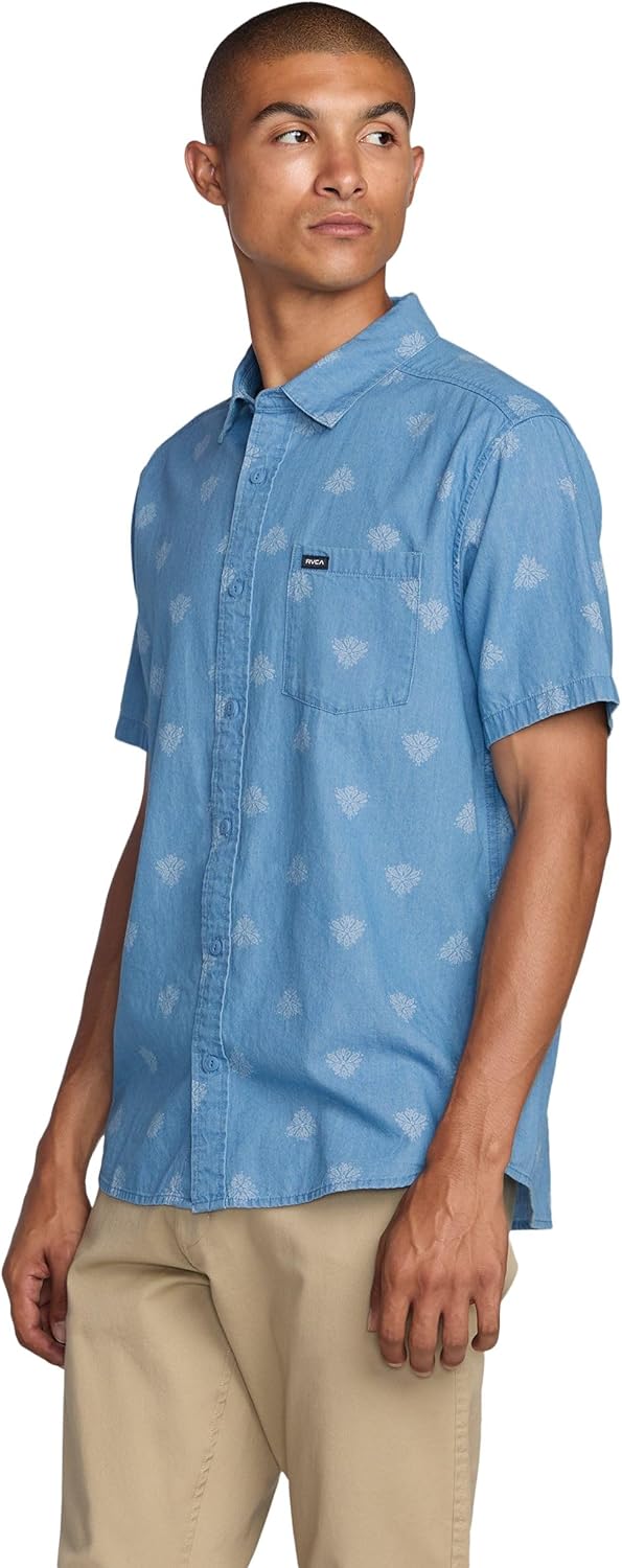 Any day. Any occasion. RVCA's Anytime Short Sleeve Woven Shirt is always a good call. Designed with a cotton-viscose blend fabric for all-day comfort and breathability, this button-up shirt offers a regular fit, a traditional collar neck, a single chest pocket, and a straight hem.