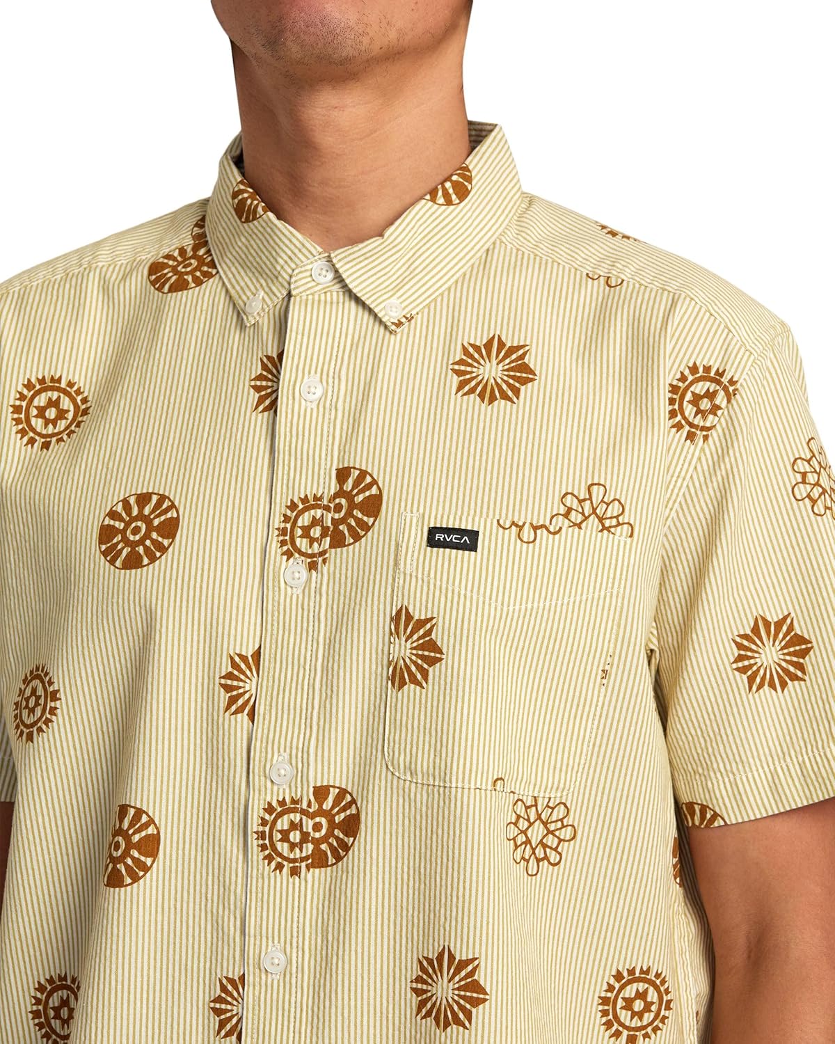 • Pocket/Trim Detail: Single chest pocket with RVCA solo label at chest pocket hem.