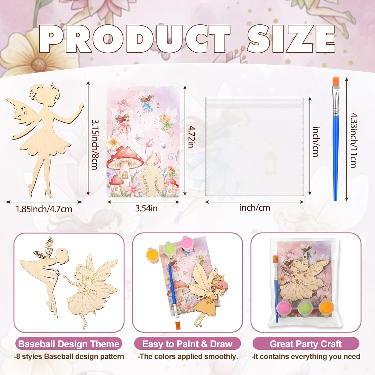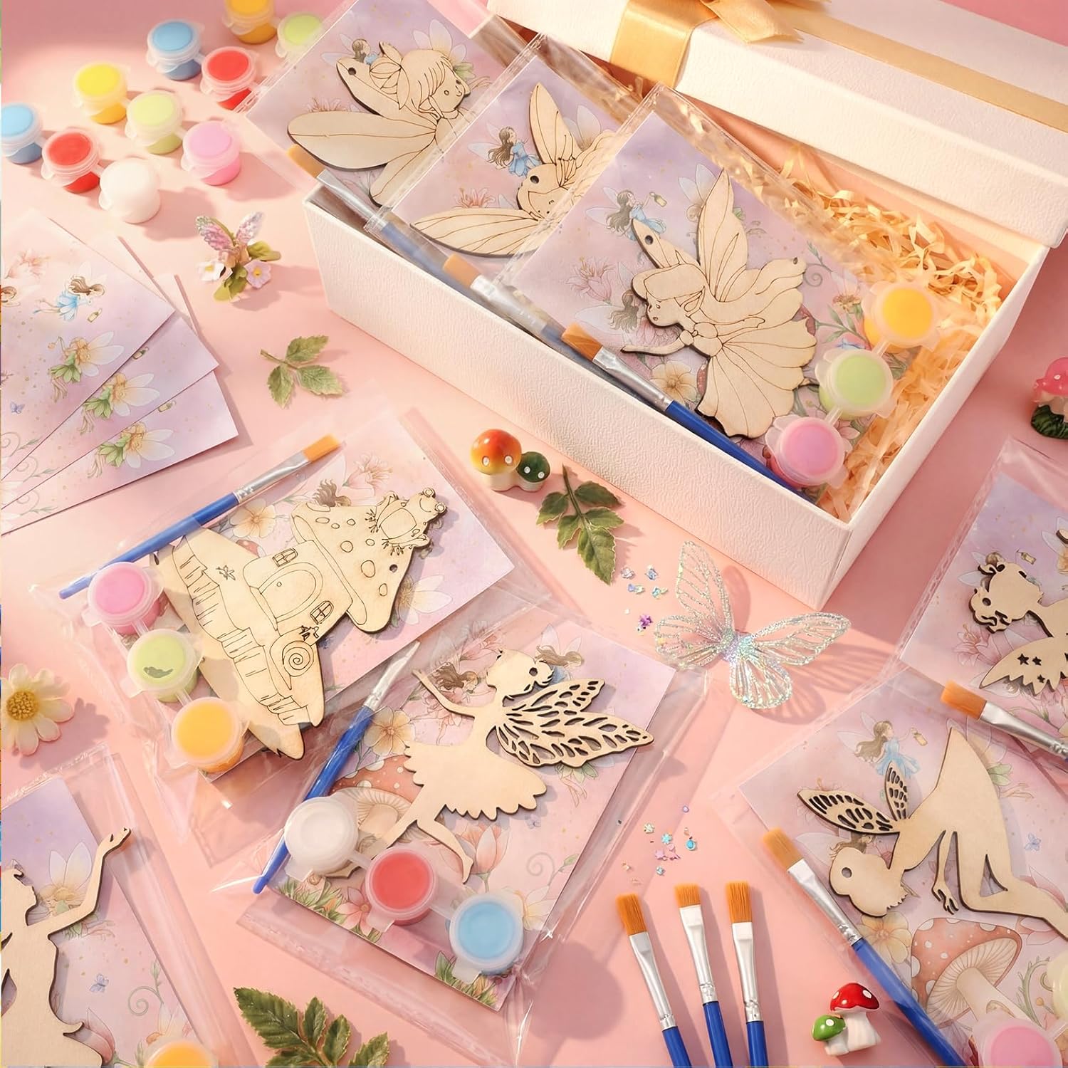 | Included Components | 24 fairy theme wooden crafts, 24 fairy theme cards, 24 mini watercolor paintings of 6 colors, 24 paintbrushes, 30 pieces of hemp rope, 30 transparent gift bags |