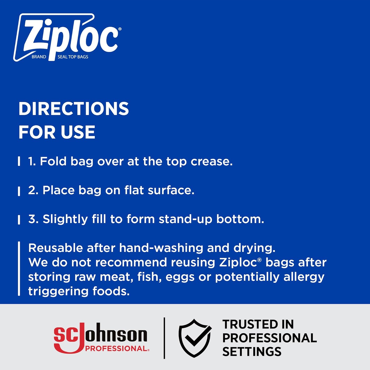 Ziploc® brand seal top bags are available in convenient commercial bulk pack sizes. Each bag blocks out air and helps lock in freshness. Less wasted food equals more money saved. When you see, hear and feel the bag close from edge-to-edge, you can be confident your item is protected. Whether you’re on the go at work or school, Ziploc® brand bags are perfect for helping keep your sandwiches, snacks and supplies as fresh as when you packed them. Ziploc® brand Storage Bags feature Grip 'n Seal™ technology, which makes them strong and reliable. Ideal for helping keep food fresh in food service operations. The extended tab and easy grip seal make it easier to open and close the bag, while the airtight zipper ensures that each plastic storage bag blocks out air providing freshness, which means less wasted food and more money saved.