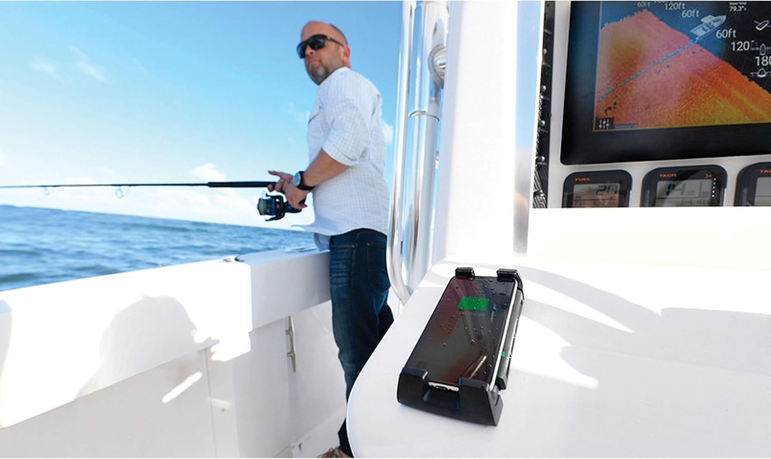 Active securely holds and wirelessly chargers your phone even in the toughest conditions. Now you can keep your phone in reach, fully charged and ready to go. Perfect for boat consoles or any vehicle working outside in the elements.