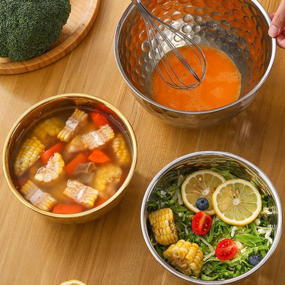 Features:*Functional Design: Specifically designed for home use, suitable for making salads, whisking eggs, and washing vegetables.*Sturdy Stainless Steel Build: Made of stainless steel, able to withstand regular use and is resistant to damage.*Simple to Use: Just place ingredients in the bowl for various tasks, and it's ready for immediate use.*Multiple Sizes: Available in diameters from 20CM to 28CM, providing different capacity options to meet various needs.*Easy - to - clean & Colorful: Comes in three colors and is easy to clean, adding a touch of style to your kitchen.Specifications:*Product Name:Stainless Steel Hammer - textured Salad Bowl*Material:Stainless Steel*Size:Diameter from 20CM to 28CM*Color:Three colors*High Universality Fitment:Yes, for home kitchen use*OEM Number:Not provided*Fitments:For salad - making, egg - whisking, and vegetable - washing at home*Number of Pieces:1Package Content:1 stainless steel salad bowl