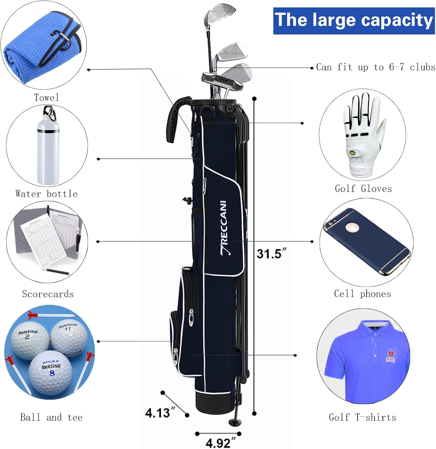 Golf Stand Bag, Lightweight Golf Easy Carry Bag with Padded Strap,Durable Pitch n Putt Golf Bag , Practice Ranger Sunday Golf Bag for Men&Women