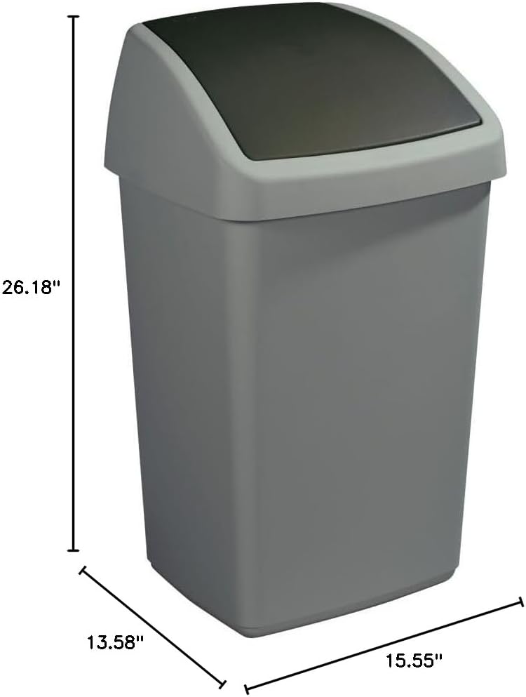 Bin is made for hygiene and functionality and with a sleek design. Trash bin is equipped with a 'swing' lid which provides one push opening and closes automatically. Product available in optimized weight with 50 litre capacity. Product available in Metallic Black colour wth dimension of 39. 5 x 34. 5 x 66. 5 cm. Made in Netherlands.