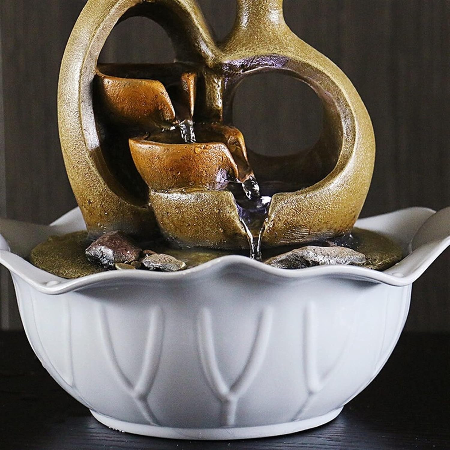 Product Name: Tabletop FountainProduct Material: ResinProduct Voltage: 110V-240V (including)Uses: Tea rooms, home furnishings, club decorations, giftsWarm Tips:1. Please check the size and color before purchasing.2. Except for the indoor fountain shown in the product photo, other items are not included.3. Please note that due to different monitors, slight chromatic aberration may occur, please understand.4. Due to manual measurement, please allow a difference of 0cm-2cm, thank you.5. Our store has a variety of styles and colors, you can go to my store to view.6. Welcome your sharing and feedback so that we can provide you with better products and services.The versatile design complements a wide range of interior styles and decorative themes, harmonising perfectly with its surroundings and giving it a cosy and welcoming feel.