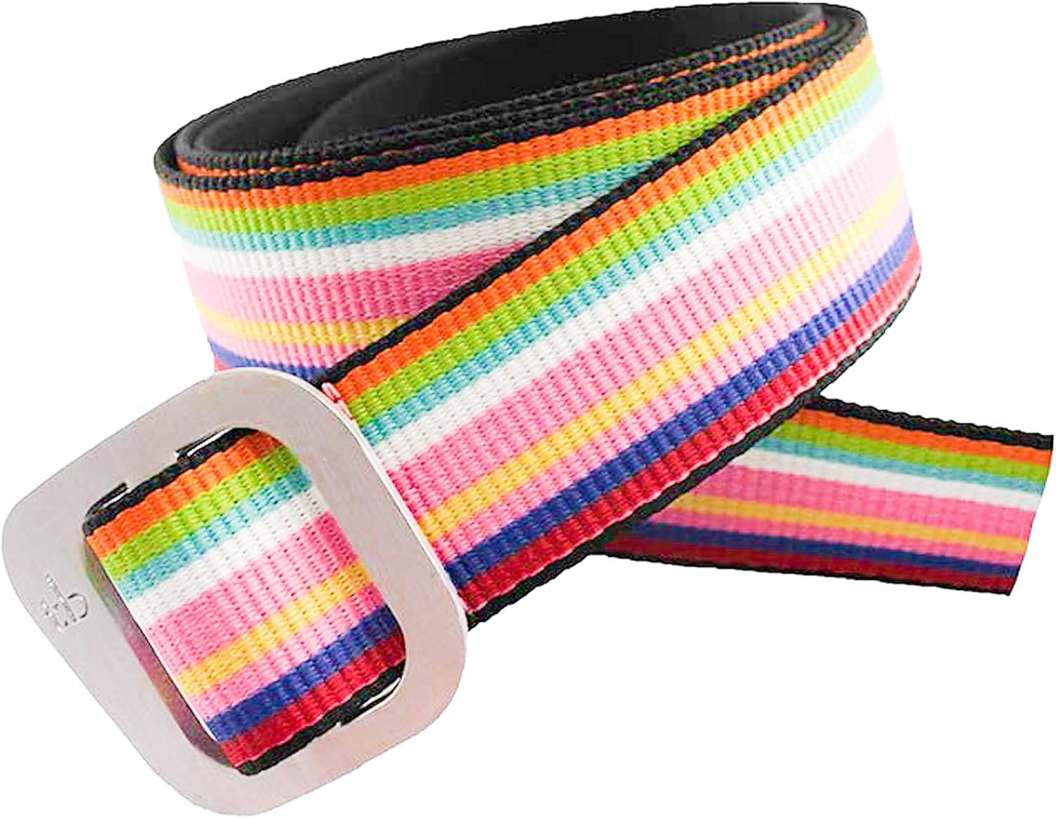 The Women’s Dakota is perfect for any outdoor adventure or adding a pop of color to any outfit. With its nylon blend webbing and lightweight aluminum buckle, it proves to be a durable and trustworthy belt. The waterproof and rustproof design also makes it perfect for hiking, camping, fishing, or just casual wear. Bright and colorful patterns available, from palm trees to wildflower patterns. Adult size will fit up to pant size 42. Width is 1.25 inches, Big and Tall size fits up to size 60 and measures 65 inches long by 1.25 in width. Custom fit to size by cutting and singeing the end. Made in USA from Global Materials