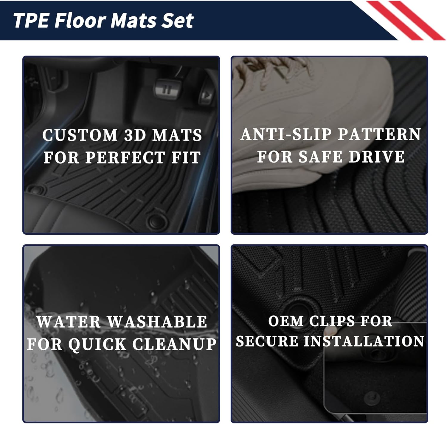 | Included Components | 1 x 2nd Row Floor Mat (for both seats), 1 x Cargo Liner, 1 x Driver Side Floor Mat, 1 x Mini Broom and Dustpan Set, 1 x Passenger Side Floor Mat |