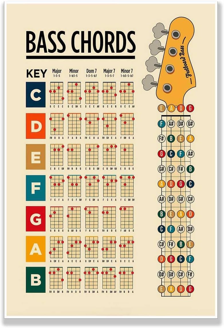 Master the ukulele with this comprehensive chord chart poster featuring essential keys and chord variations. This invaluable learning guide displays Major, Minor, Dom7, Major7, and Minor7 chord formations in a clear, visually appealing layout. Perfect for beginners and intermediate players alike, the poster includes detailed finger positioning diagrams for keys C through B, making it easier to understand and memorize chord structures. The stylish design combines modern aesthetics with practical functionality, featuring an orange ukulele graphic and easy-to-read chord diagrams marked with precise finger placements. Whether you're practicing at home, teaching others, or need a quick reference during practice sessions, this chart serves as an indispensable tool for expanding your ukulele playing capabilities. The systematic arrangement of chords helps develop muscle memory and understanding of chord progressions, making it an excellent educational resource for music rooms, studios, or any learning space.