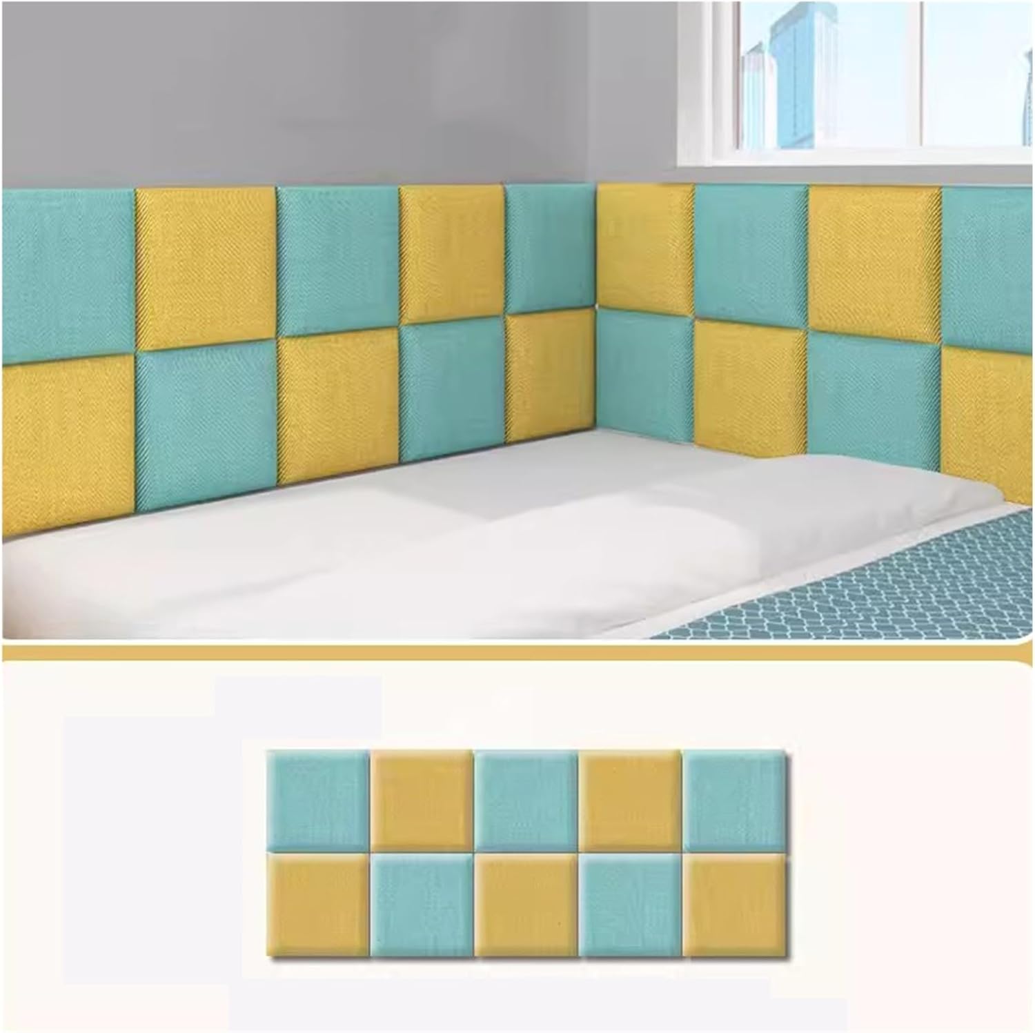 Brand introduction brand was established in 1995 The factory mainly operates a variety of home renovation, home decoration, home textiles We focus on the high quality and reasonable sales price of our products Our goal is to bring a good shopping experience to our customers We always focus on consumers and better provide , sales and services PRODUCT FEATURES. 1. Wipeable: just gently wipe the surface of the wall sticker with a damp paper towel to remove traces of paint, oil paint or marker without worrying about Easy to clean, the are always new. PRODUCT SPECIFICATIONS. Type of wall sticker: Anti-Collision Wall Mat /Upholstered Wall Panels /Upholstered Wall Panels /Self-adhesive 3d wall stickers/Upholstered Accent Wall Panels /Headboard / 3D Anti-Collision Padding /Peel And Stick Self Adhesive Waterproof Panel /Soundproof Wallpaper/ Kid's Anti Collision Decorative Protection Material: high density and linen Interlayer: sponge Back panel: wooden board Thickness: 3cm Function: impact resistance, sound insulation Color: Yellow+green, White+grey, White+green, White+basket Wall sticker style: super sticky, flat wall sticker Measurement units: 10 centimeters (cm) = 3.93 inches (in) Dimensions: (height x length) 60x120cm (pack of 8) 50x150cm (pack of 10) 50x180cm (pack of 12) Shape: square More colors and sizes can be customized PRODUCT INCLUDES 1 x Mounted Headboards WARM TIPS. 1. Please measure the correct size of the bumper sticker carefully before purchase and then choose the right size according to the bumper sticker size.