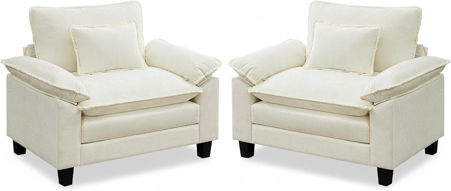 Upgrade your home comfort with the URRED Cloud Couch Accent Chair with Ottoman — a modern blend of oversized luxury and minimalist design. This cozy chair set turns any corner into a cloud-like lounging retreat. Covered in ultra-soft chenille fabric, the surface feels plush, breathable, and gentle on skin, while adding a warm, modern touch to your home. The deep, extra-wide seat features a dual-layer cushion: a firm, supportive foam base topped with a soft cotton-wrapped upper layer. You get a perfect balance of softness and structure — a true “cloud couch” experience. Designed for all-day comfort, the ergonomic backrest and padded armrests support your posture whether you’re reading, relaxing, or napping. The matching ottoman lets you elevate your legs and fully unwind. Whether placed in your living room, bedroom, or reading nook, this oversized accent chair set fits seamlessly into any modern space. The terracotta orange color adds a bold yet sophisticated statement to your decor. Easy to assemble with no tools required, this chair set is built with a sturdy frame and quality cushioning that stands the test of time. Delivered as a set of 2, it's perfect for creating symmetry in large spaces or offering matching comfort for couples and guests.