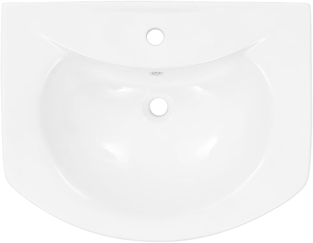This freestanding ceramic washbasin with full base will be an ideal addition to any bathroom, toilet or cloakroom. Glazed ceramic and modern and elegant design will match any decor. A tap hole with a diameter of 35 mm is included. The sink is easy to clean. Please note that the tap and drain are not included. Colour: white. Material: glazed ceramic Basin dimensions: 650 x 520 x 200 mm (W x D x H) Base dimensions: 200 x 170 x 675 mm (W x D x H) With an overflow Drain hole diameter: 45 mm Tap hole diameter: 35mm Installation Type: Freestanding