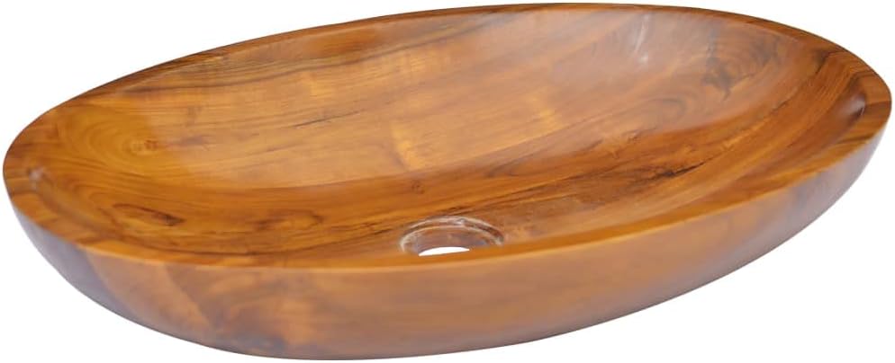 This solid teak wood basin is not only a practical sink for everyday use, but also an adornment for your living spaceConstructed from extremely durable teak hardwood, this sink has been seasoned, kiln-dried and then fine sanded to give a very smooth appearance. In addition, this wooden basin is very easy to clean.Material: Fine sanded teak hardwood with finishDimensions: 23.6" x 15.7" x 3.9" (L x W x H)Drain hole diameter: 2"Assembly required: NoCalifornia Proposition 65