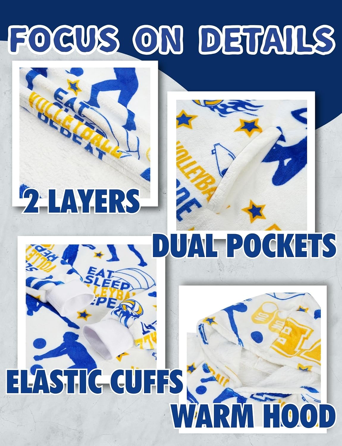 Huglanket Volleyball Gifts for Women, Teens, Wearable Blanket for Volleyball Lovers, Soft Warm Cozy with Pockets, One Size, Perfect for Friends, Teammates, Coaches - Eat Sleep Volleyball