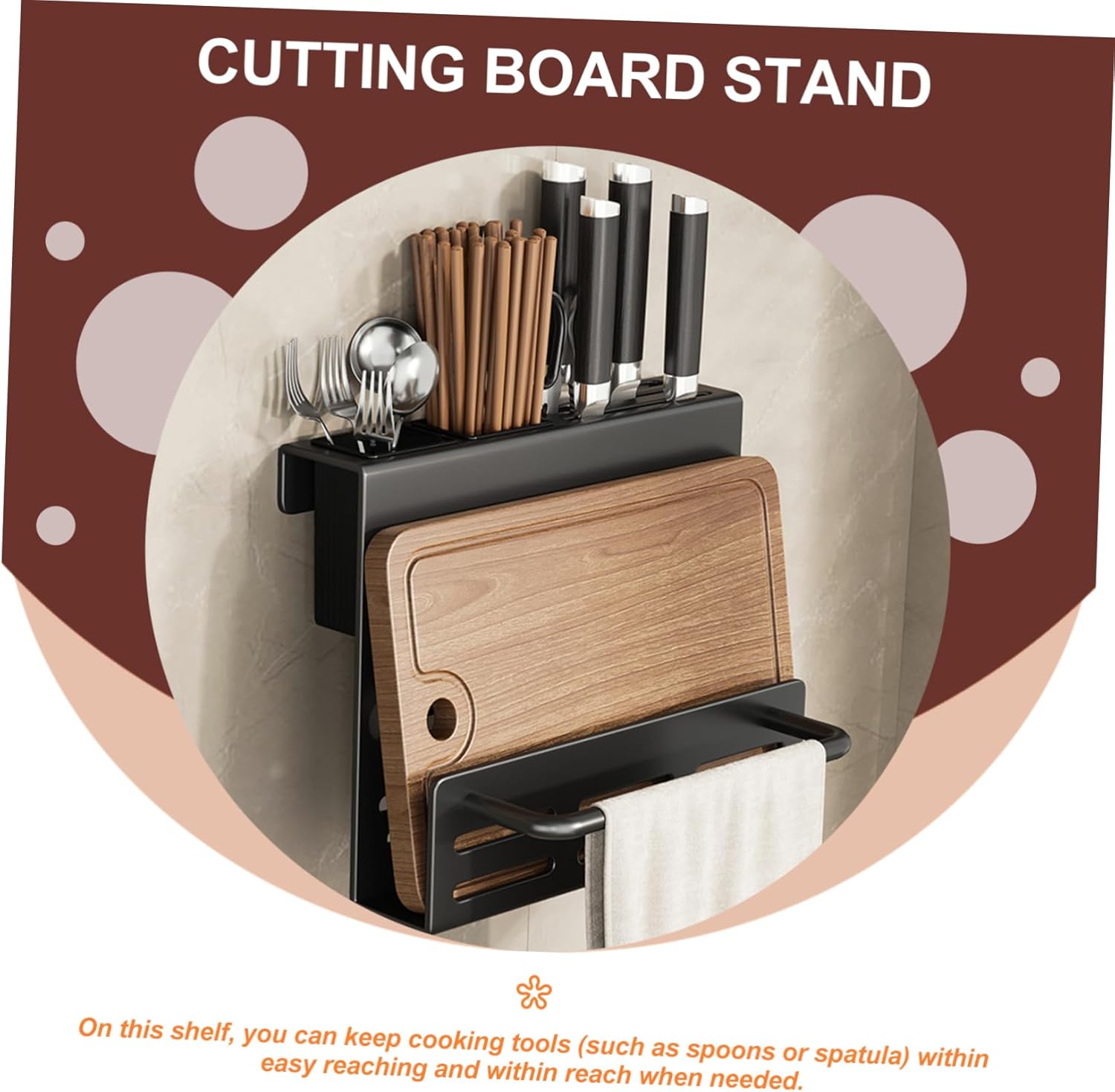 • Cutting board holder--you can store chopsticks, forks and spoons, your kitchen will not be messy again,chopsticks holder