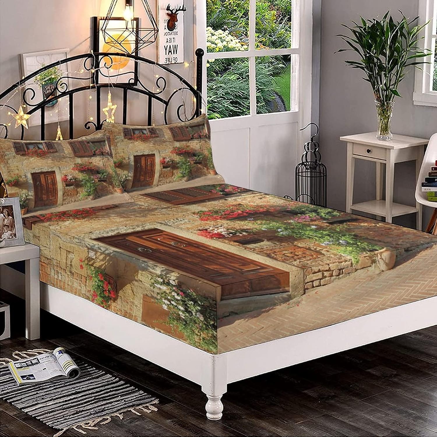 Makeover your bedding room with just a single touch! Start with these fun and decorative fitted sheet setUnique & modern designs match well with various color palettes of rugs,curtains and any other bedroom accessories. Its a quick and luxurious way to refresh and change the appearance of adults & kids bedroom,guest suite or hotel bed without a big expense. High resolution pictures bring a 3D like realistic experience to your life. Adds real value and depth to your decor.The sheet set is available in Twin,Twin XL,Full ,Queen and King. In a large array of colors to suitable different bedroom decorTWIN FITTED SHEET SET 3PCS:1 Fitted Sheet/39"x80"+12'',2 Pillowcase/20"x30"TWIN XL FITTED SHEET SET 3PCS:1 Fitted Sheet/48"x80"+12'',2 Pillowcase/20"x30"FULL FITTED SHEET SET 3PCS :1 Fitted Sheet/54"x80"+12'',2 Pillowcases/20"x30"QUEEN FITTED SHEET SET 3 PCS:1 Fitted Sheet/60"x80"+12'',2 Pillowcases/20"x30"KING FITTED SHEET SET 3 PCS:1 Fitted Sheet/78"x80"+12'',2 Pillowcases/20"x36"CALIFORNIA KING FITTED SHEET SET 3 PCS: 1 Fitted Sheet/72"x84"+12'',2 Pillowcases/20"x36"WITH ELASTIC ALL AROUNDThis fitted sheet up to 12 inches could fit most of the mattress. For your shopping experience,please measure your bed carefully before purchasing.BREATHABLE&SOFTWe aim to bring you a plush and cozy sleeping experence with our double brushed microfiber lightweight sheet set. If you sweat a lot during sleeping,this could be your best choice.We strive to create products that is using the finest textiles .We find techniques that include better stitching,stronger weaving,and more affordable materials. We are committed to providing an enjoyable shopping experienceBest Choice & Gift:Perfect for any room in your house such as bedroom,guest room,kids room,RV,vacation home. Great gift idea for men and women,moms and dads,Christmas - Mother's - Father's Day and Christmas.