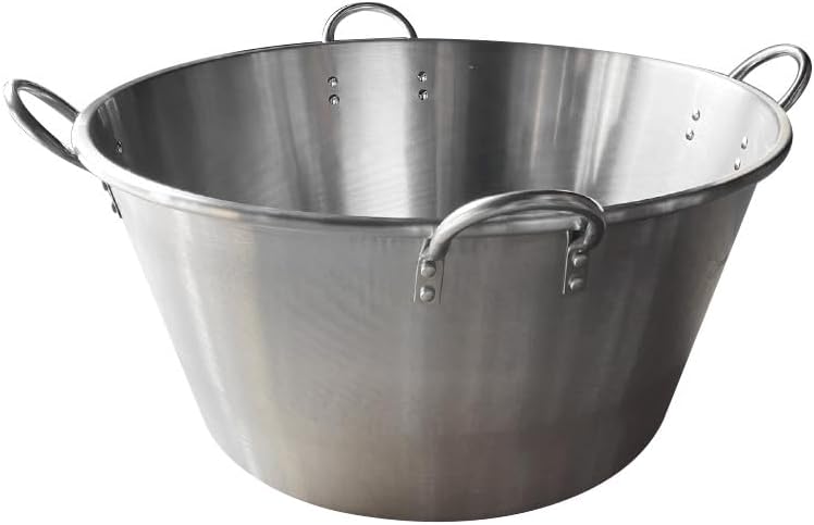 - XXL Extra Large 32 Inch Carnitas Cazo Stainless Steel Caso Pot Pan Wok Gas Stove Bunrer Cook- Dimension: 32 Inch Top Diameter x 16 Inch high (depth) x 23 Inch Flat Bottom Diameter *Rough Estimation*- Weight: 32 Pounds *Rough Estimation*- Material: Heavy Stainless Steel- Designed With 2 Handles- Long Lasting Use- Qty: 1
