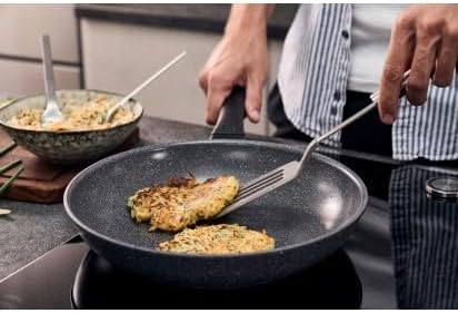 Made to meet even the toughest challenges in the kitchen: the ZWILLING Terreno Plus Frying Pan. The reinforced CERAFORCE Titanium ceramic coating of the pan is made without PFAS and has a robust titanium hard primer. It combines excellent non-stick properties with top performance and extreme durability: it is up to five times more durable than Gemini previous ceramic coatings. Thanks to the solid aluminium body, the heat in the pan is distributed particularly quickly and evenly so that no hot spots are created. The frying pan in a popular granitium look has a plastic handle that sits ergonomically in the hand and ensures more safety: it stays pleasantly cool even during prolonged frying.
