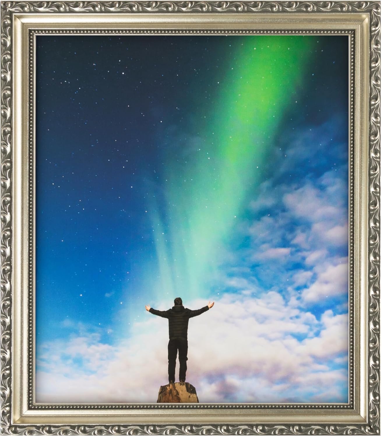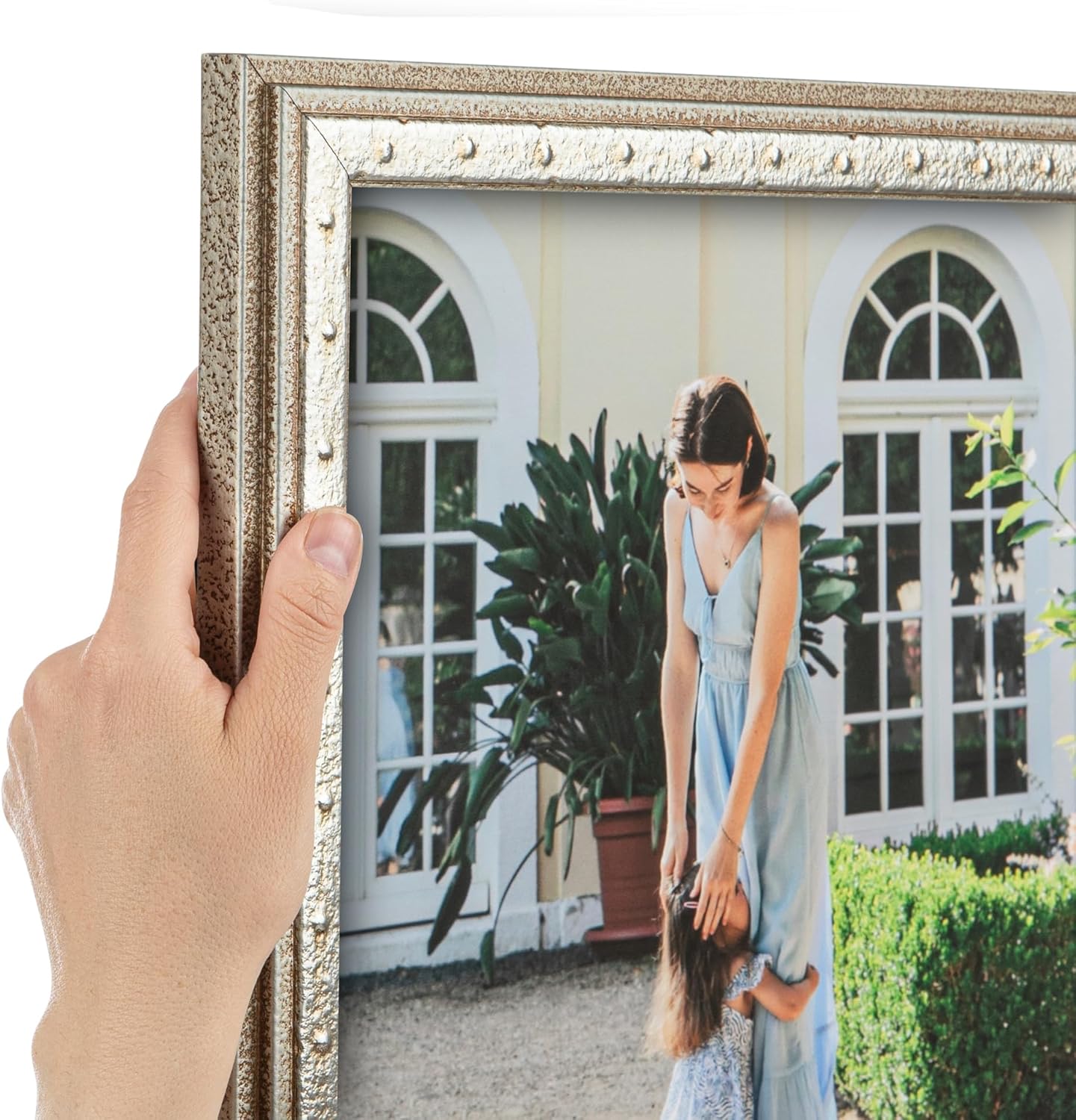 This is a brand new 6x8 picture, photo, diploma, poster frame (meaning a 6 '' x 8 '' or a 8 '' x 6 '' print will fit just right). This 6x8 Silver Compo Dark Wash frame is made of Wood, measuring 1.13'' wide, and 1.0000'' deep, with a 0.3250 '' deep rabbet (the space below the lip to the bottom of the frame). It is carefully made to the highest quality industry standards. This frame comes with Regular Glass. This frame is a unique frame that you will not find in most frame shops. The frame is perfect to lighten up your most cherished picture, photo, art gallery, poster, photograph, painting, diploma, artwork, craft project, needle-point or more, yet modest enough to match just about any environment. This Silver Compo Dark Wash frame works perfectly with black-and-white , and color pictures or paintings. Please don't hesitate to browse through our policies and feedback. If you're not sure this is exactly the frame you'd like, feel free to use the search at the top of this page and search ArtToFrames to view our huge selection of wood, MDF and premade picture frames. ~Product SKU # - - WOM5227-6x8~