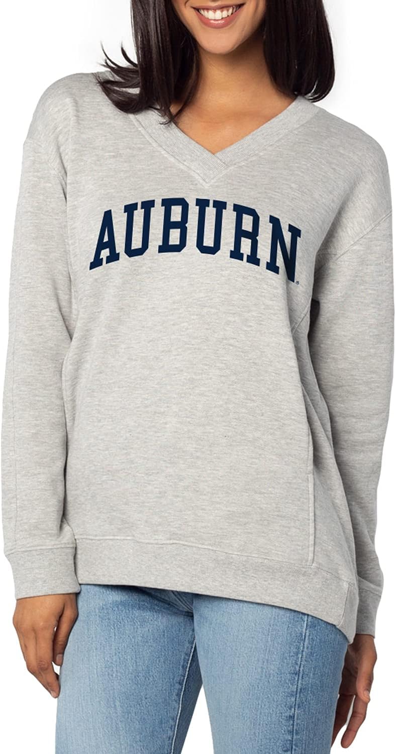 Look great on game day or every day in this fashion fleece! V-neckline, invisible front pockets and a heathered fabric are feminine details in this fleece pullover. Support your favorite team while staying on-trend with the NCAA officially licensed graphic.