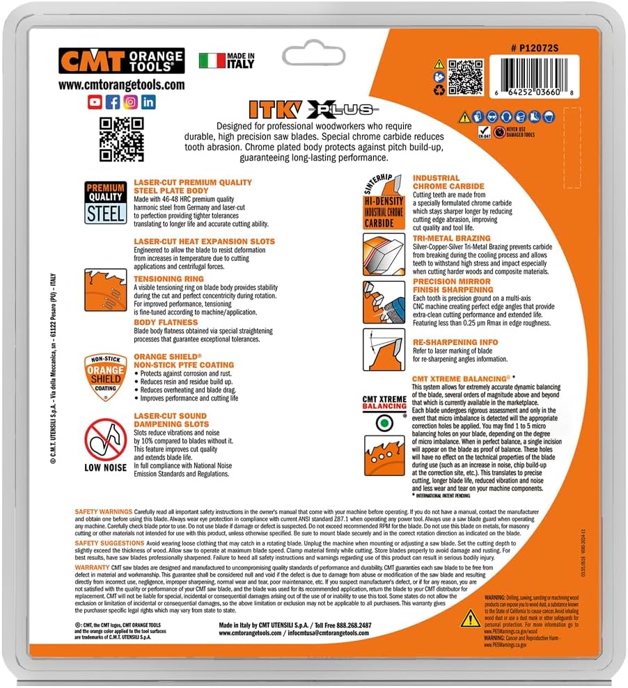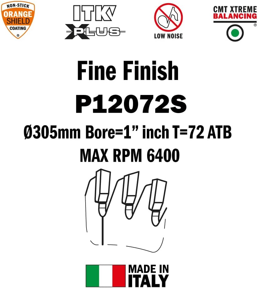 | Included Components | ITK Plus Finish Sliding Compound Blade HW D=12x72T ATB Bore=1" |