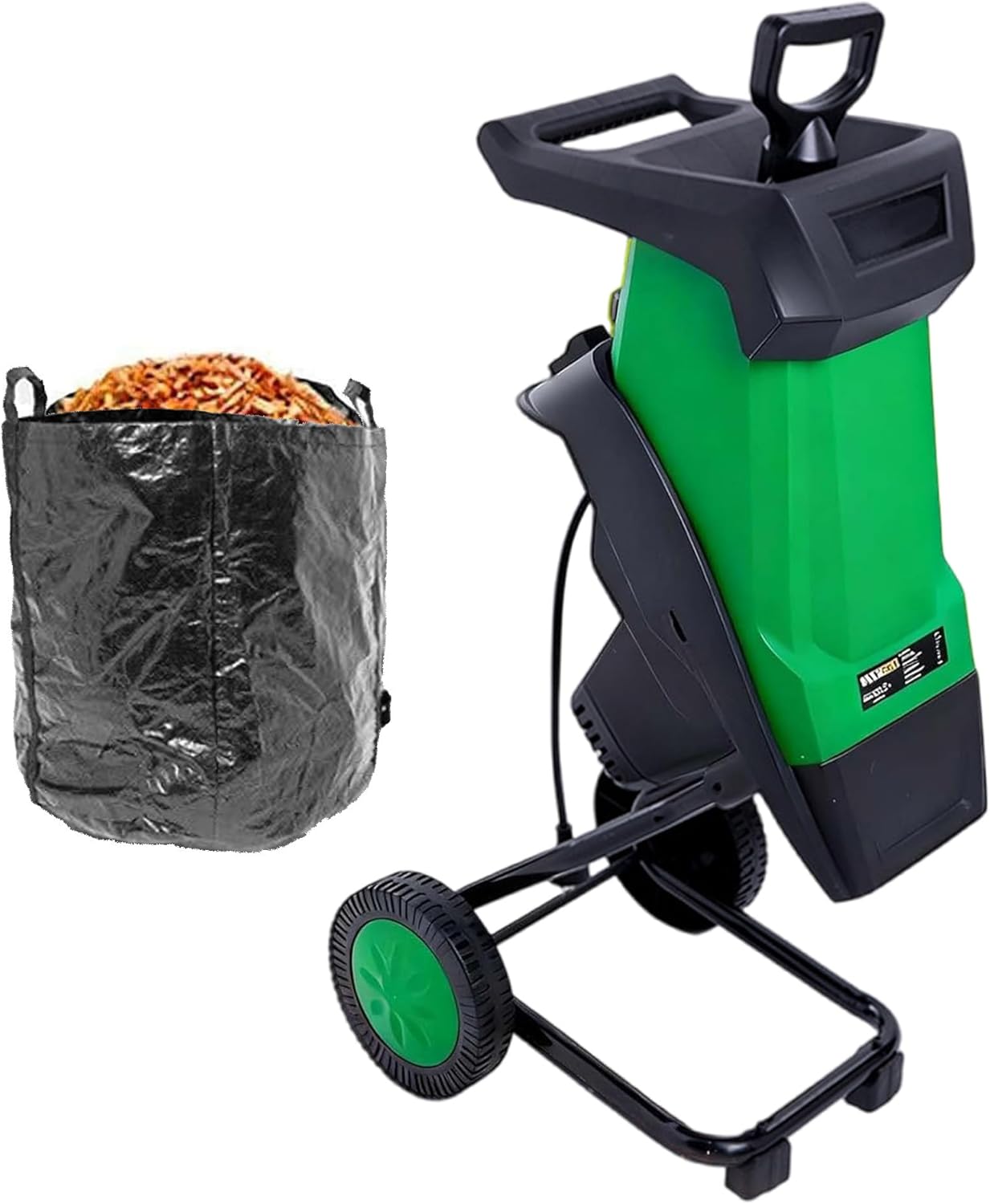 Why is this electric garden shredder a top choice for home gardens and small landscaping projects?Powered by a 2400W motor and manganese steel blade disc, it shreds branches, shrubs, and roots up to 4cm (1.57in) in diameter. Equipped with a rubber safety guard, 50L collection bag, and smooth-rolling casters, it handles shredding and cleanup to simplify yard upkeep.Features:✅ 2400W high-power motor & 4500rpm manganese steel blade disc✅ Easily shreds branches, shrubs & roots up to 4cm/1.57 inches in diameter✅ Overload and blockage protection helps prevent motor burnout and extends product life✅ 50L large-capacity collection bag holds debris for easier cleanup✅ Bottom-mounted casters allow for easy movement around the garden, no lifting needed✅ Considerate design details: safety knob, start switch, push rod, multi-size feed chuteSpecifications:Power: 2400WNo-Load Speed: 4500RPMMax Cutting Diameter: 40mmCollection Capacity: 50LWeight: 11.5kg (25.4lb)Package Size: 64 × 32 × 38.5cm (25.2 × 12.6 × 15.2in)Package Includes:1 × Electric Garden Shredder1 × A set of spare blades1 × 50L Collection Bag1 × Safety Push Rod1 × User ManualImportant Notes:⚠️ Always use the push rod; never put hands into the feed chute.⚠️ Avoid use in wet conditions.⚠️ Can handle damp twigs up to 2cm (0.8in) thick.⚠️ Use a grounded power outlet and a suitable extension cord.① Manual measurement; slight size deviations may occur.② Display/lighting differences: Actual color may vary from images.③ 24/7 Support: Contact us for any purchase or use-related questions.