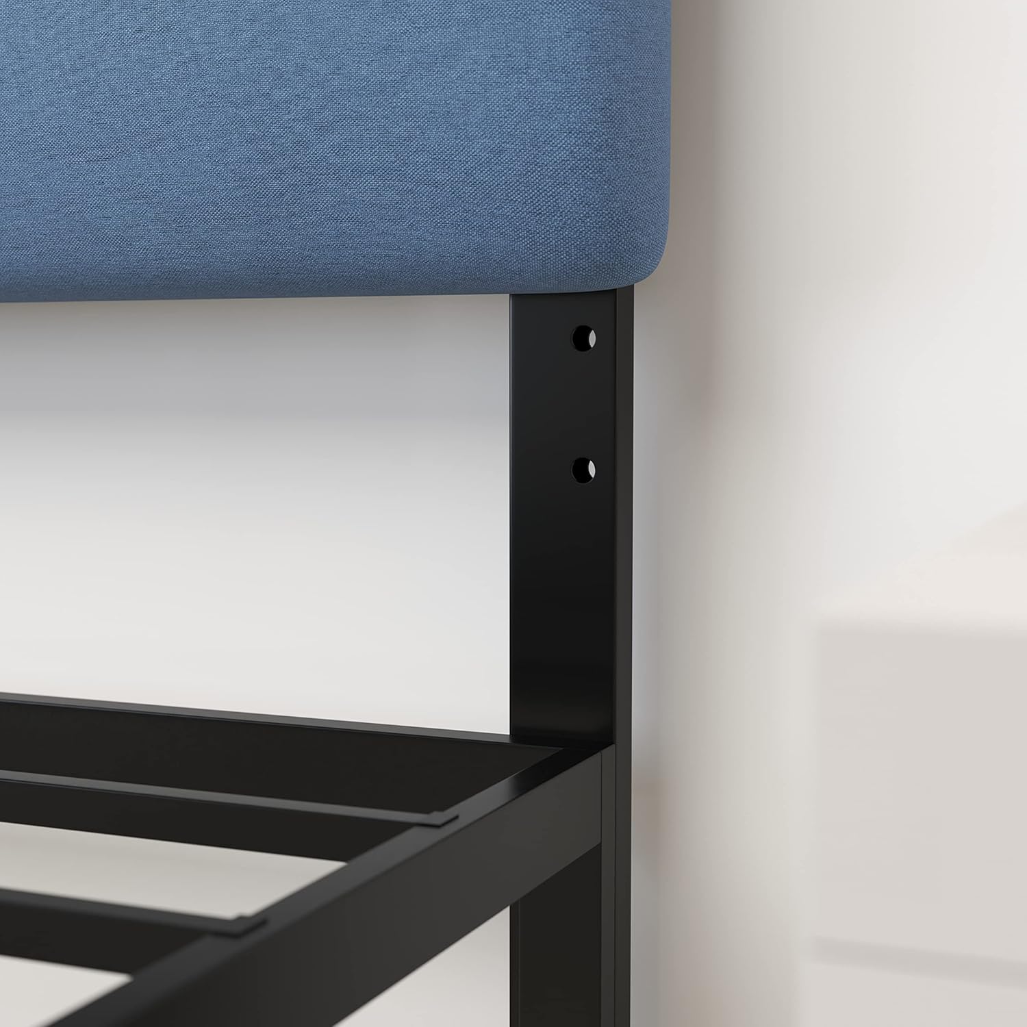 Designed to enliven modern interior designs with a mid century appeal, this stylish bed frame also provides welcomed functionality. The tufted fabric upholstery fits seamlessly with your other bedroom décor and provides a soft backing for relaxing in bed. The metal frame features metal legs with adjustable bed rail slots that has been crafted to fit most standard sized bed frames, giving this piece its new age functionality.