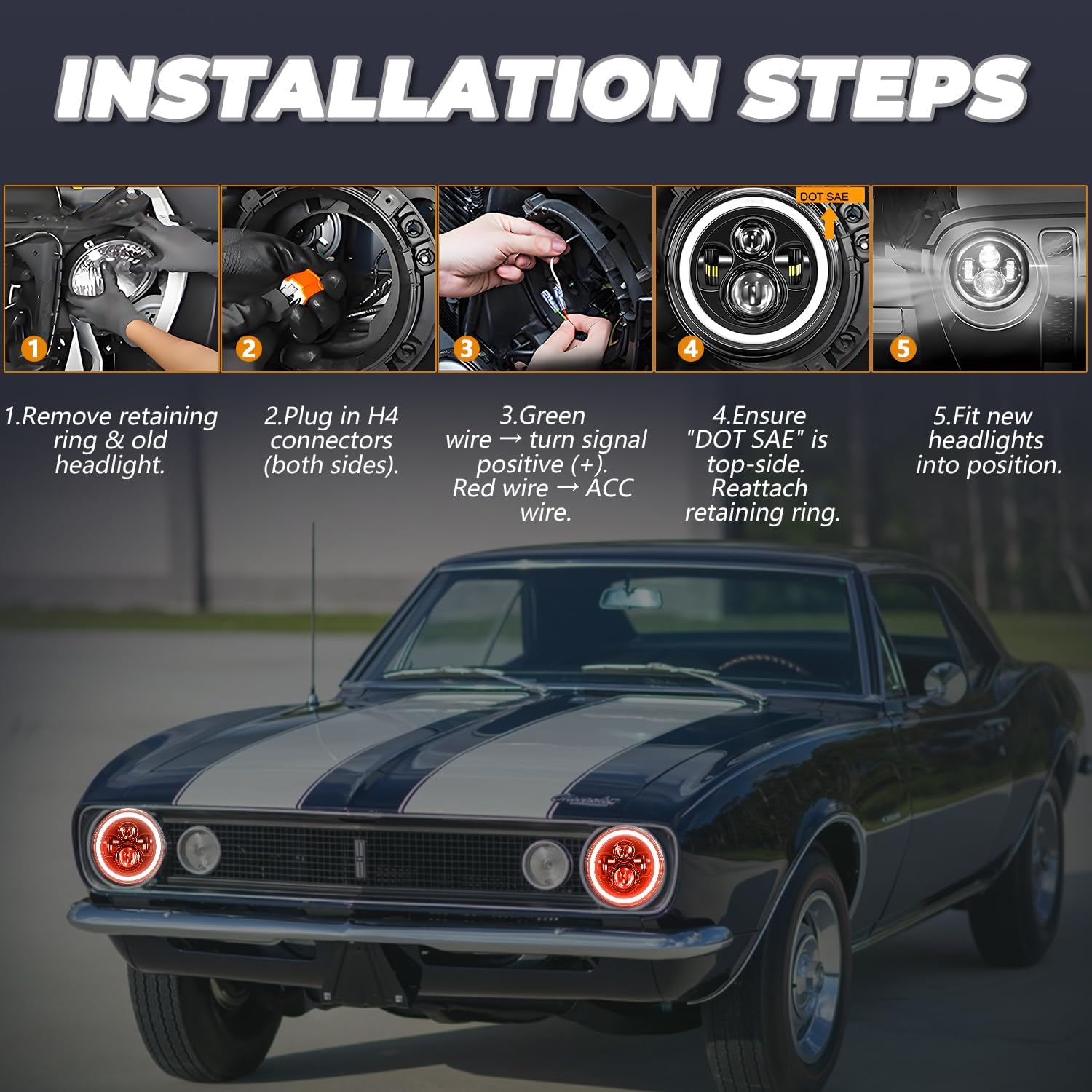 | Compatible with Vehicle Type | for 7'' led headlights for Jeep Wrangler 1997-2017; Compatible with 1997~2006 Jeep Wrangler TJ; Compatible with 2004~2006 Jeep Wrangler LJ unlimited; Compatible with 2007~2017 Jeep Wrangler JK; Compatible with 2007~2017 Jeep Wrangler Unlimited JK; Compatible with 1976-1986 Jeep CJ-7 ; Compatible with 1990-1997 Mazda Miata MX5; Compatible with 1970-1983 Nissan 240Z 260Z 280Z; Compatible with 1961-1980 Dodge D100 D200 D300 Pickup, etc. |
