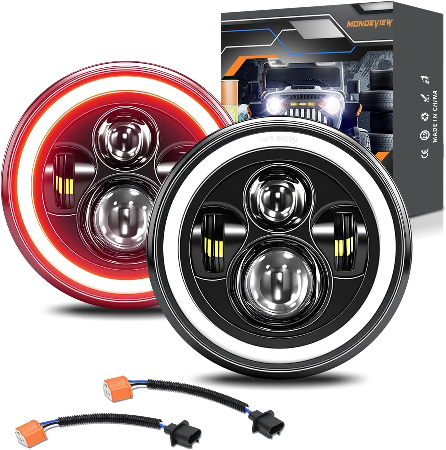 | Included Components | 2 pcs 7'' led headlights+ 2pcs h4-h13 adapters |