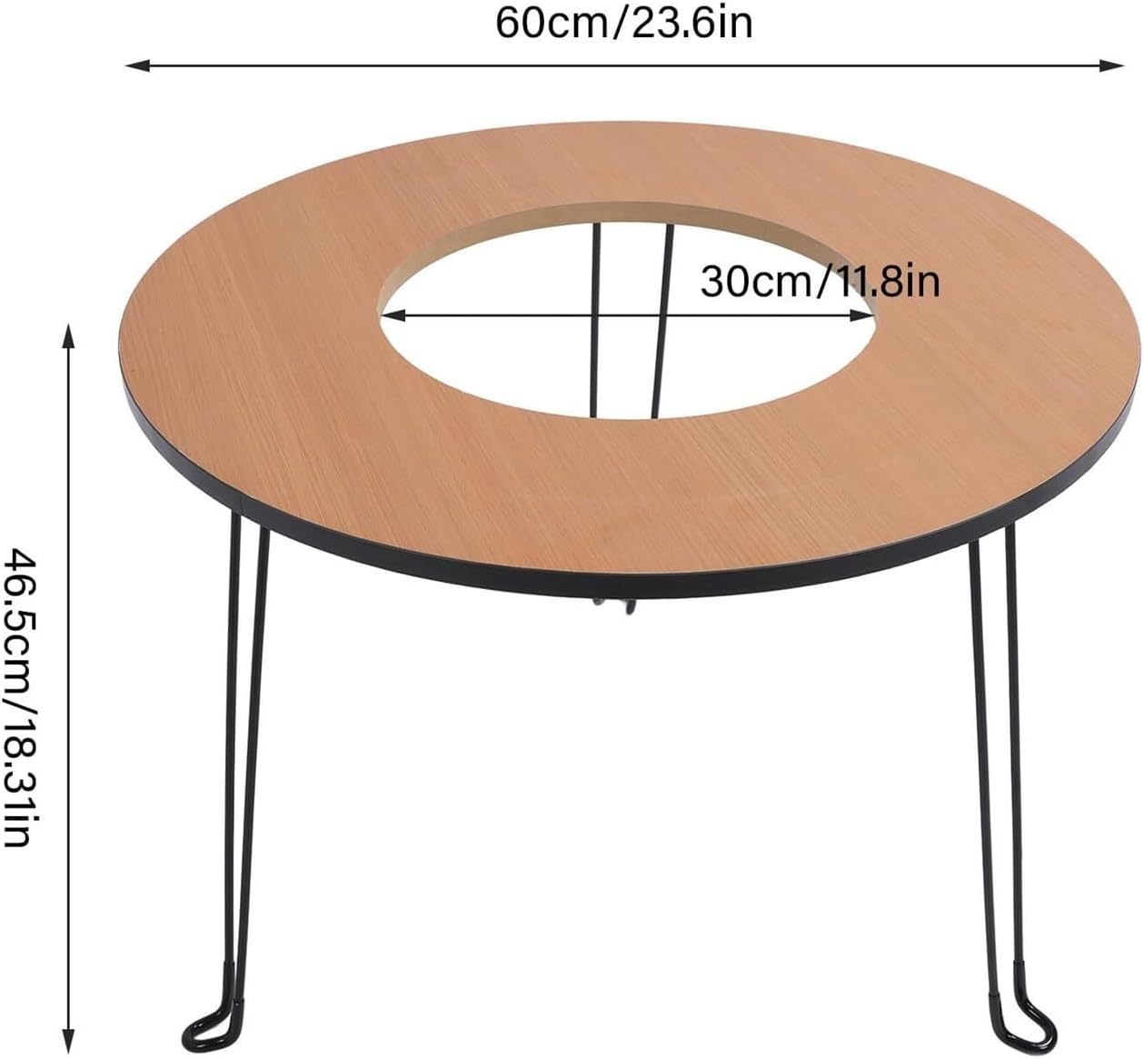 The Folding Camp Table is a versatile and practical solution for all your outdoor and indoor needs. Constructed from a combination of sturdy iron carbon steel and wood, this table is designed to withstand frequent use while providing a stable surface for various activities. Whether you're hosting a BBQ, brewing tea, or enjoying a picnic, this portable table is the companion.Its lightweight and compact design make it easy to transport and store, ideal for camping trips, beach outings, and backyard gatherings. The round tabletop offers plenty of space for food, drinks, and serving dishes, ensuring a comfortable experience for you and your guests.With a simple setup and foldable design, this table is convenient for travel and storage. The durable materials ensure long-lasting performance, making it a reliable choice for outdoor enthusiasts and home use. Elevate your next gathering with this multifunctional folding camp table, designed for convenience and practicality.