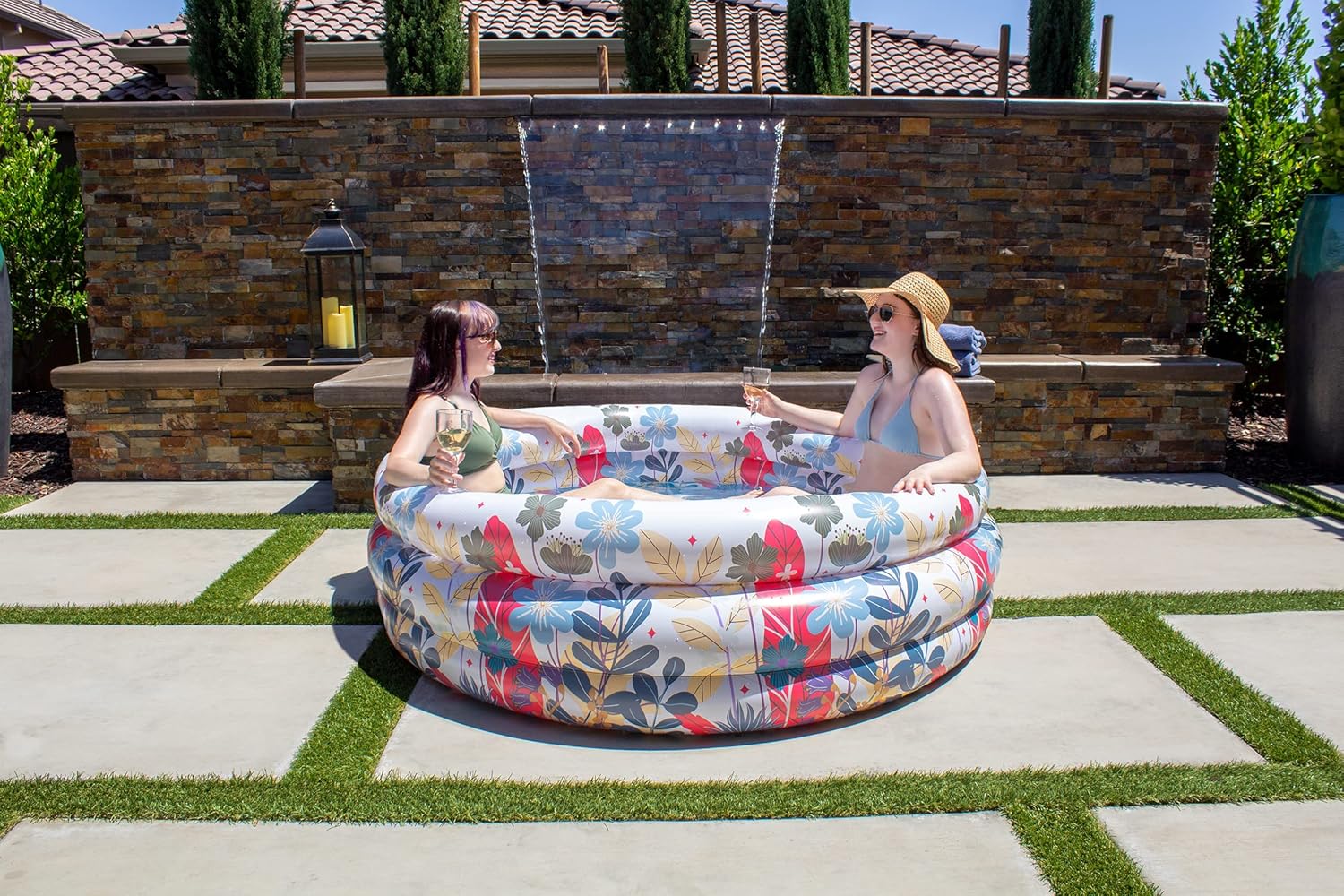 Urban / city living just got better! This 5-Foot Inflatable Swimming Pool for adults is the perfect size to turn your patio or balcony into a mini Zen oasis. This portable swimming pool is great for the lawn, backyard, camping and picnics. Enjoy relaxing alone or with your favorite someone during the hot summer days and nights. The inflatable bottom keeps you sitting comfortably and the four integrated beverage holders allow you to set your beverage aside while you splash yourself cool. Perfect for any outdoor setting and for use on any smooth surface. You're welcome!