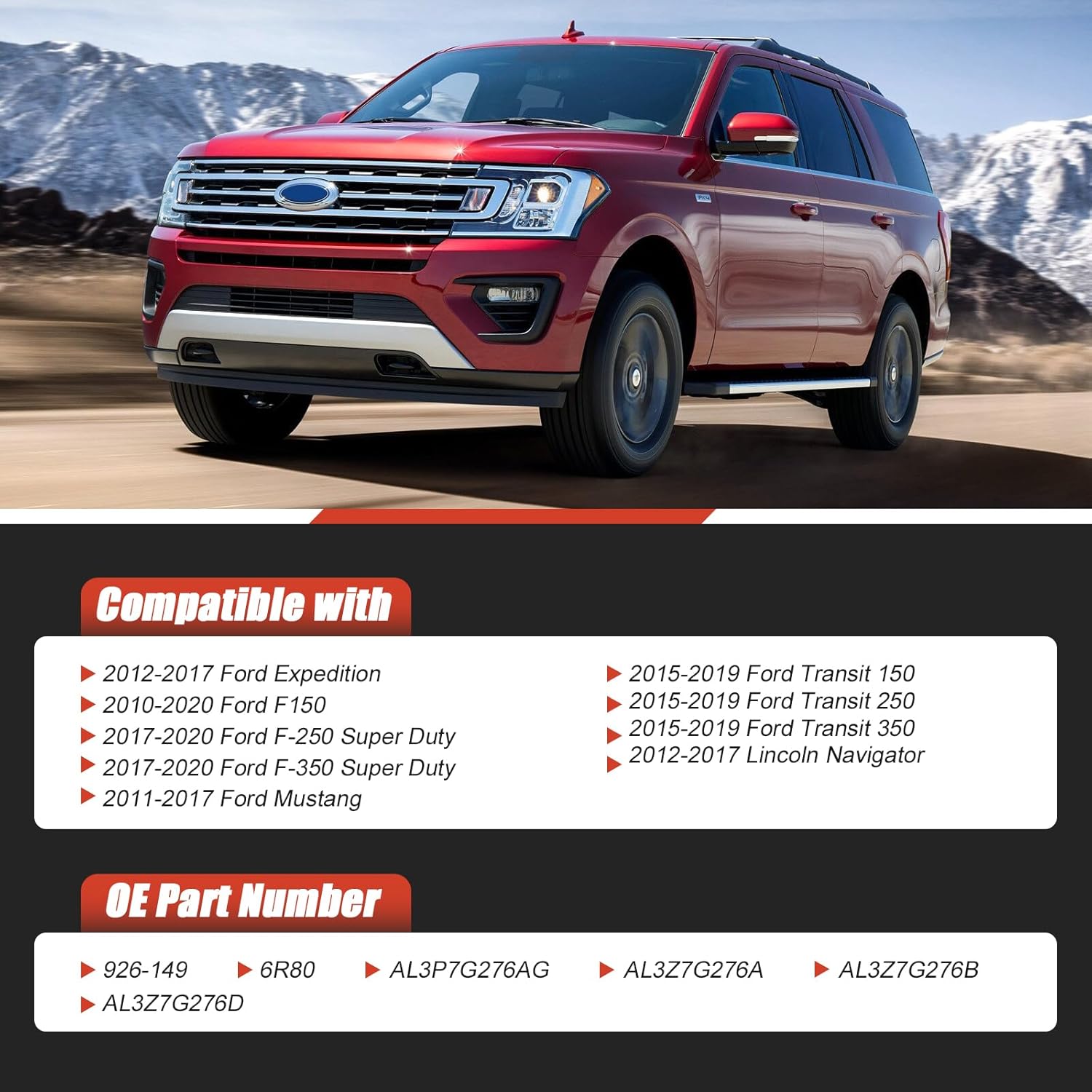 | OEM Part Number | AL3Z-7G276A, AL3Z-7G276-B, AL3Z-7G276-D, 926-149. |